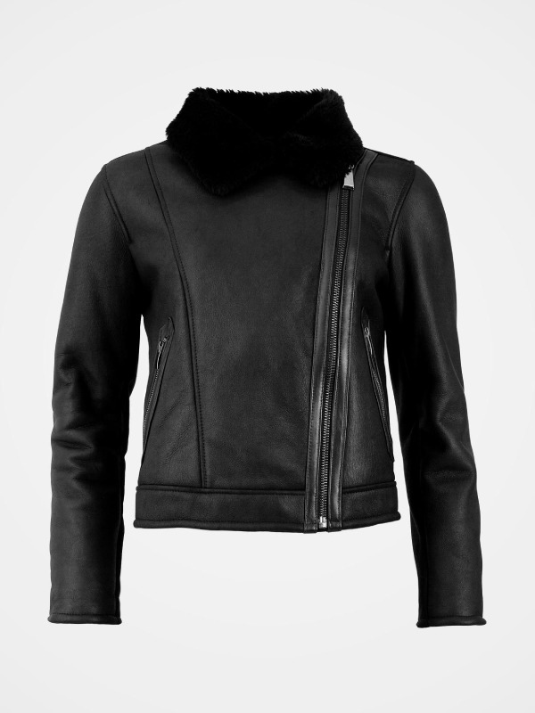 Women’s Black Leather Shearling Coat