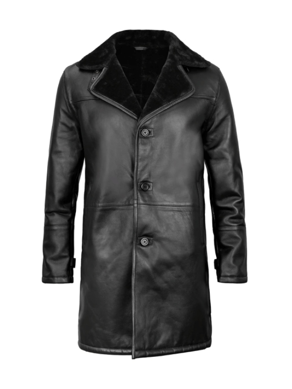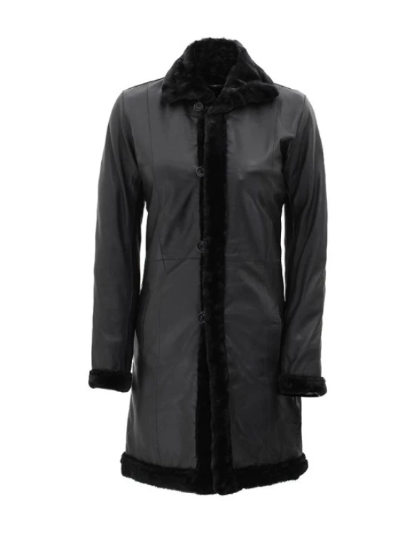 Women’s Black Leather Long Shearling Coat