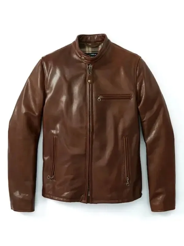 Waxed Natural Pebbled Cowhide Cafe Leather Jacket